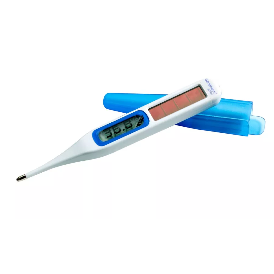 A Geratherm® napelemes hőmérő teljesen akkumulátor nélkül működik, kis napelemekkel rendelkezik, amelyek átveszik a hőmérő tápellátását. Teljesen feltöltve akár 96 órán keresztül is használható fény nélkül.