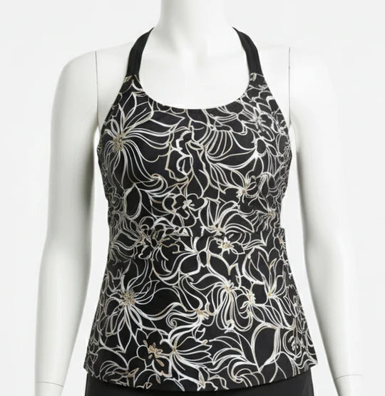 Női inkontinencia tankini magas derekú alsóval: Stílusos, kétrészes női inkontinencia fürdőruha virágos felsővel és fekete inkontinencia úszónadrággal, beépített vízálló alsóval inkontinenciában szenvedő hölgyek számára. Akár a helyi szabadidőközpontban, akár a strandon úszik, ez az inkontinencia fürdőruha úgy lett kialakítva, hogy önbizalmat adjon Önnek, ÚJ, beépített melltartó-támasztással és előnyös sziluettjével, diszkrét védelemmel. Alkalmas hidroterápiához/aquaterápiához vagy bármilyen vízi terápiához.