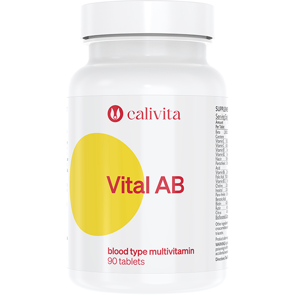 A fejlődés során legutoljára kialakult vércsoport az A- és a B-vércsoport keveredéséből jött létre. Az AB-vércsoportúak étrendje vegyesen alakítható, bár a zöldségfogyasztás kedvezőbb hatásokkal jár. A számukra kifejlesztett Vital AB multivitamin emelt dózisban tartalmaz kalciumot és szelént. A vitaminokat és ásványi anyagokat olyan gyógynövények egészítik ki, mint a vörösszőlő-kivonat, a zellerlevél és a fokhagyma.